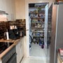 -Priestranná americká kuchyňa s otvoreným pôdorysom a chladničkou s výrobníkom ľadu