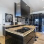 Z kuchyne je prístup do obývačky z jednej strany a priamo do salónu a na vonkajšiu terasu s grilom z druhej strany.